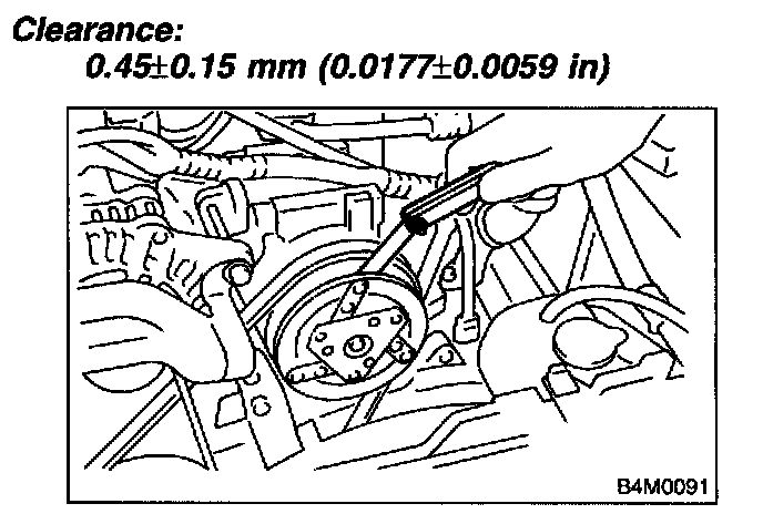 2. Check that clearance between drive plate and pulley over the entire perimeter is within specifications.
