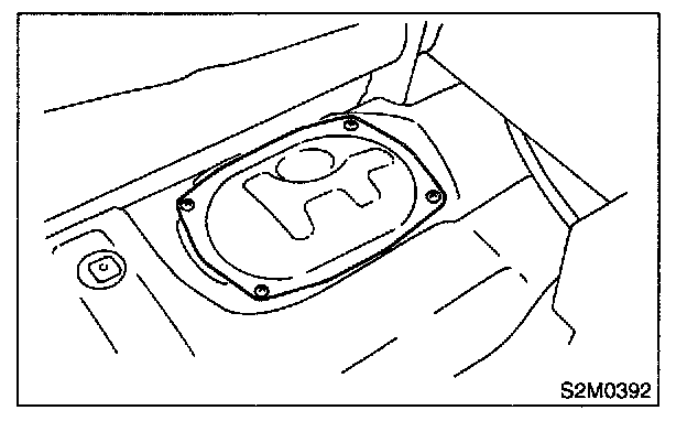 2. Remove fuel pump access hole lid located on the right rear of luggage compartment floor.