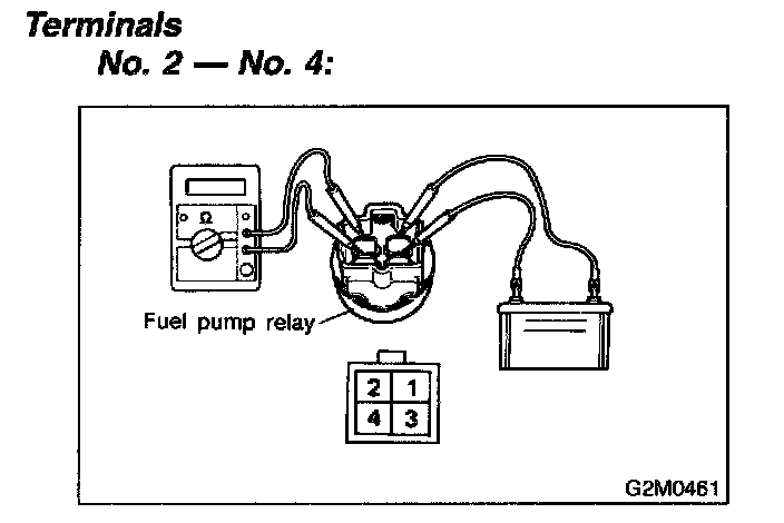 3. Connect battery to fuel pump relay connector terminals No.1 and No.3.