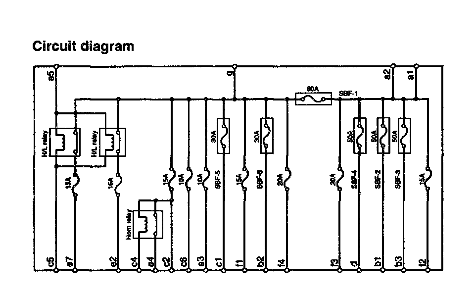The main fuse and relay box (A) is installed at the rear of the battery on left side of the engine compartment.