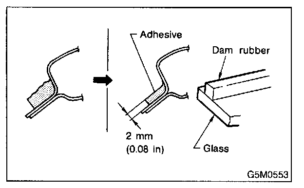 1. After cutting layer of adhesive, remove dam rubber remaining on body.