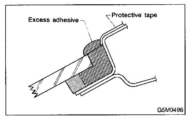 CAUTION: When making through-hole into adhesive layer and cutting the adhesive, be careful not to damage interior and exterior parts.