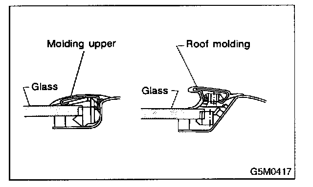CAUTION: Do not open and close door after moldings have been installed. When opening and closing door for unavoidable reasons, lower door glass and gently move door.