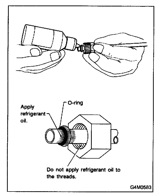 - In order to keep the O-rings free of lint which will cause a refrigerant gas leak, perform operations without gloves and shop towels.