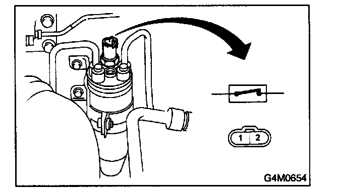 2. Disconnect pressure switch harness connector, and check pressure switch for proper ON-OFF operation. Use a circuit tester.