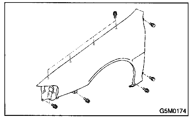 CAUTION: Be careful not to scratch body panels with fender edges when removing it.