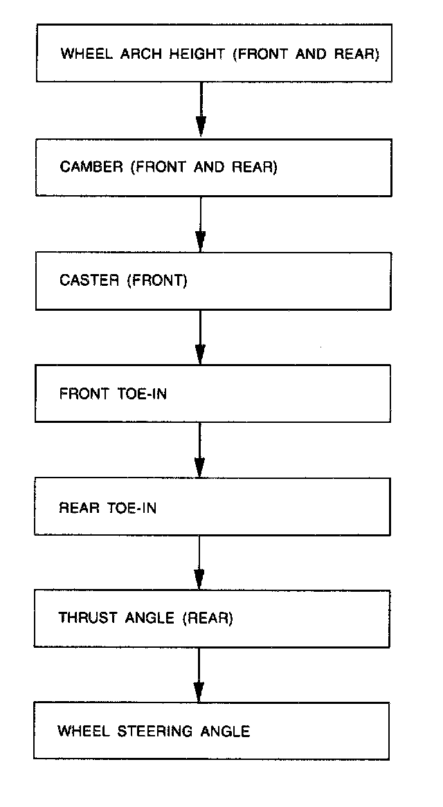 Check, adjust and/or measure wheel alignment in accordance with procedures indicated in figure.