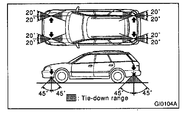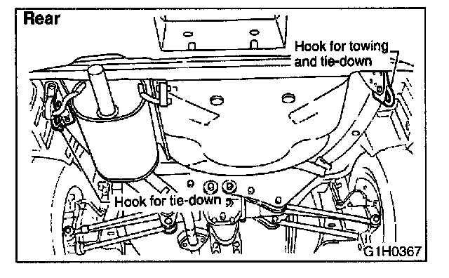 Tie downs are used when transporting vehicles and when using the chassis dynamo. Attach tie downs only to the specified points on the vehicle.