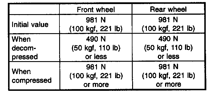 7. Read values indicated on the brake tester and check if the fluctuation of values, when decompressed and compressed, meet the standard values.