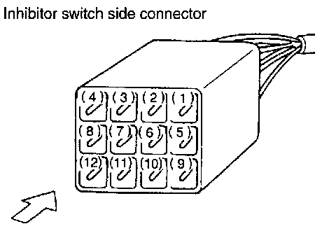 NOTE: If inhibitor switch is inoperative, check for poor contact of connector on transmission side.