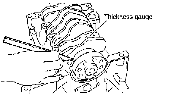 4. Measure the thrust clearance of crankshaft at center bearing. If the clearance exceeds the limit, replace bearing.