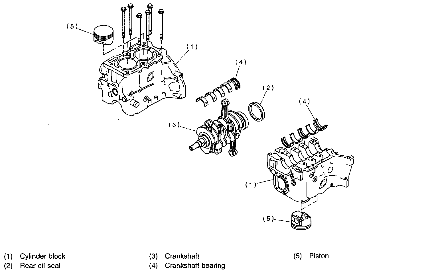 CAUTION: Remove oil in the mating surface of bearing and cylinder block before installation. Also apply a coat of engine oil to crankshaft pins.