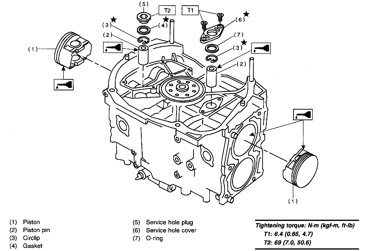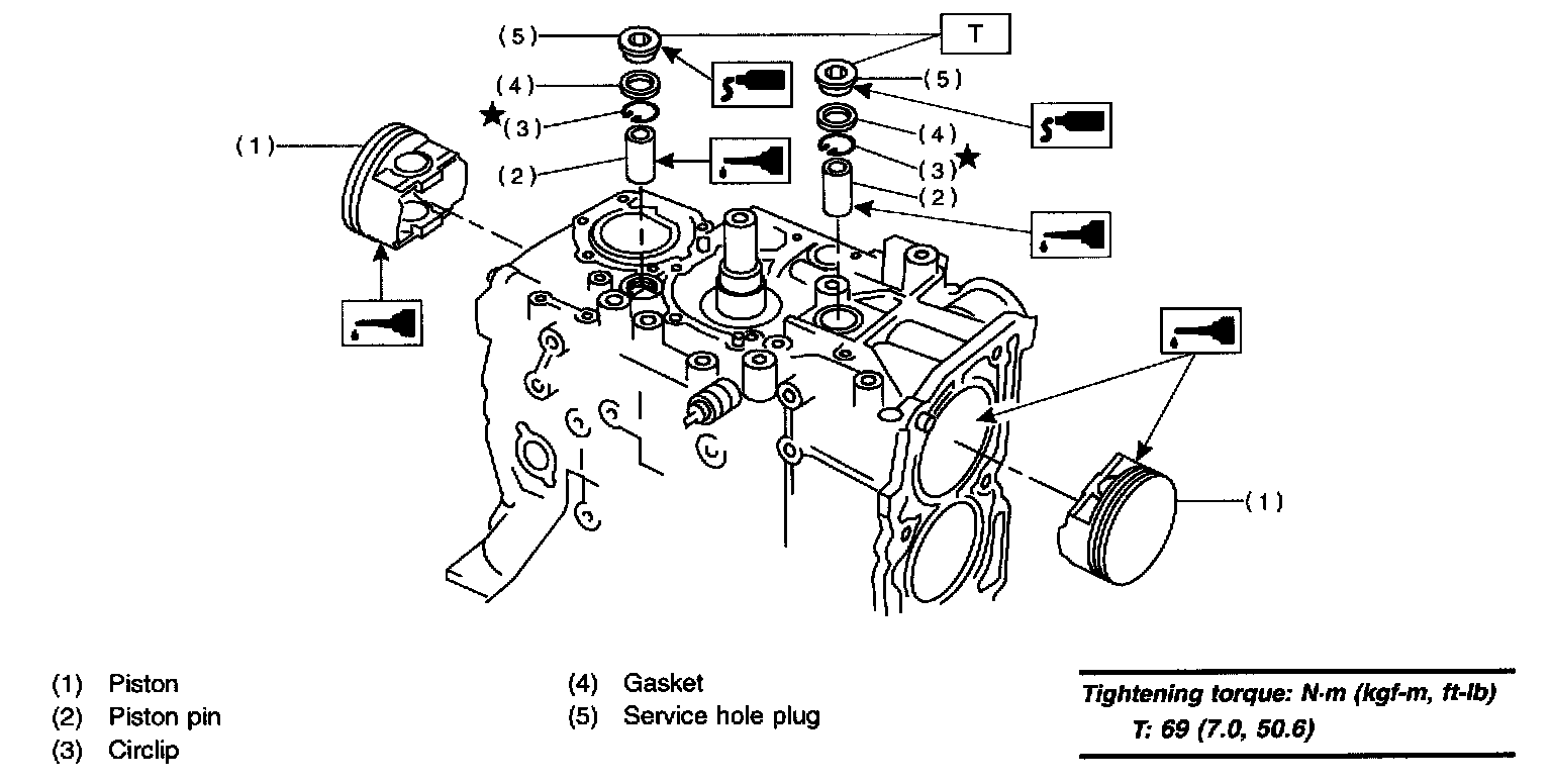 CAUTION: Be careful not to confuse original combination of piston, piston pin and cylinder.