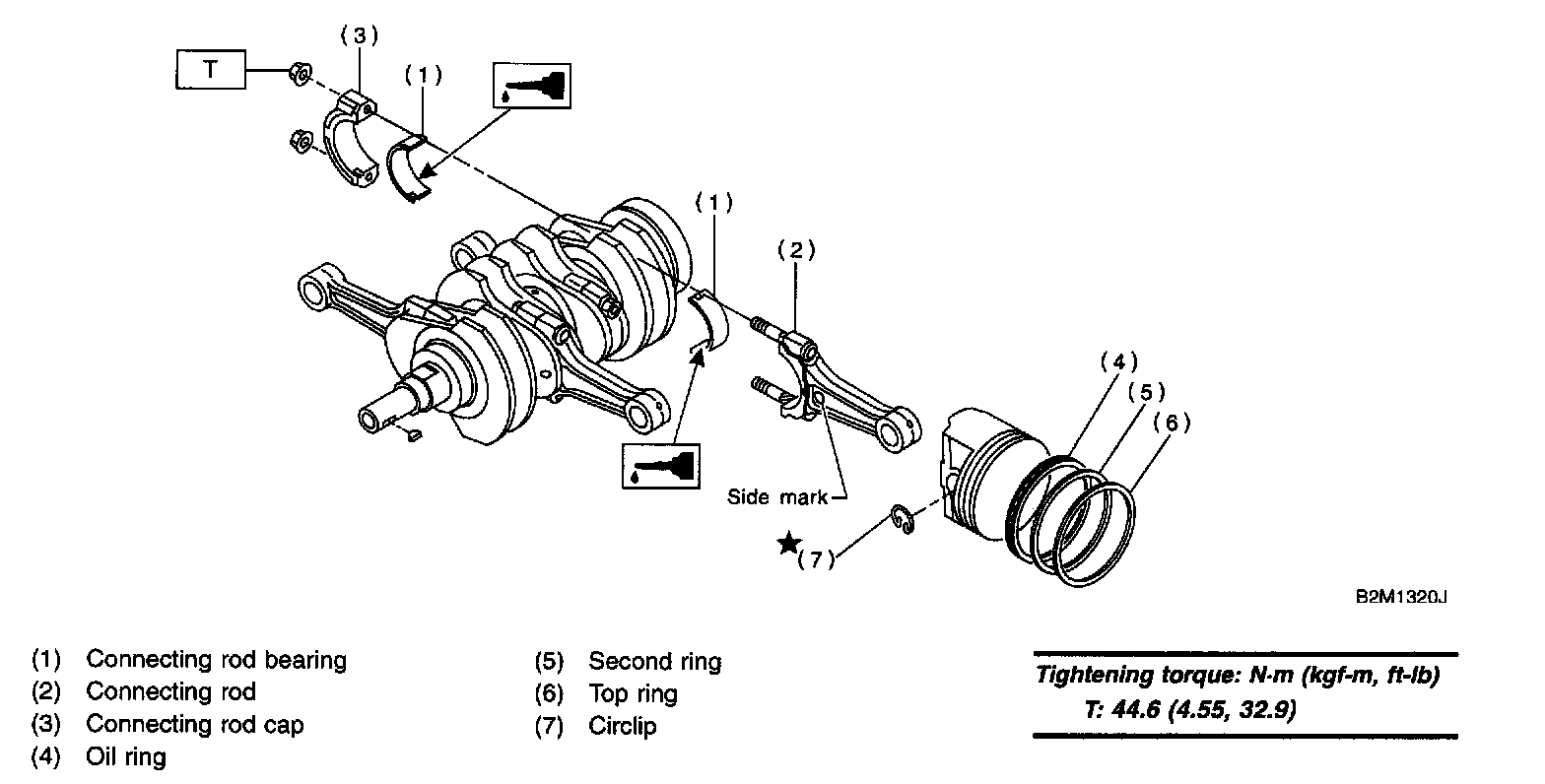 Tightening torque: 47 ±3 Nm (4.8 ±0.3 kgf-m, 34.7 ±2.2 ft. lbs.)