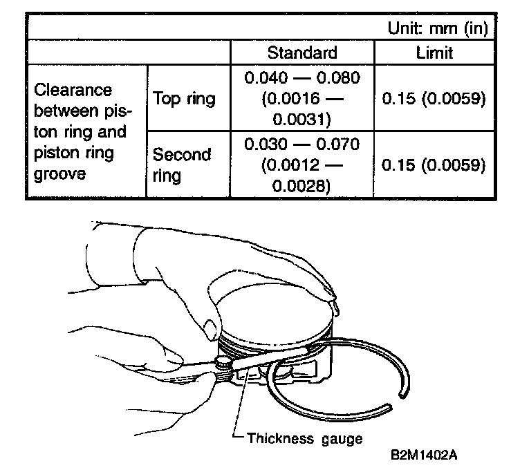 CAUTION: Before measuring the clearance, clean the piston ring groove and piston ring.