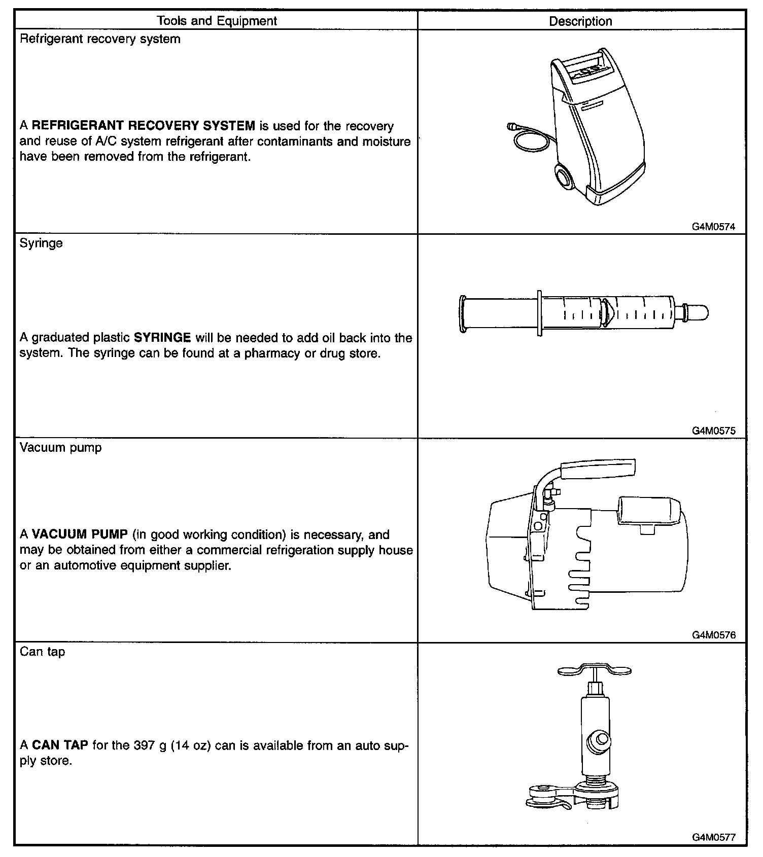 In order to help prevent mixing HFC-134a and CFC-12 parts and liquid, the tool and screw type and the type of service valves used are different. The gas leak detectors for the HFC-134a and CFC-12 systems must also not be interchanged.