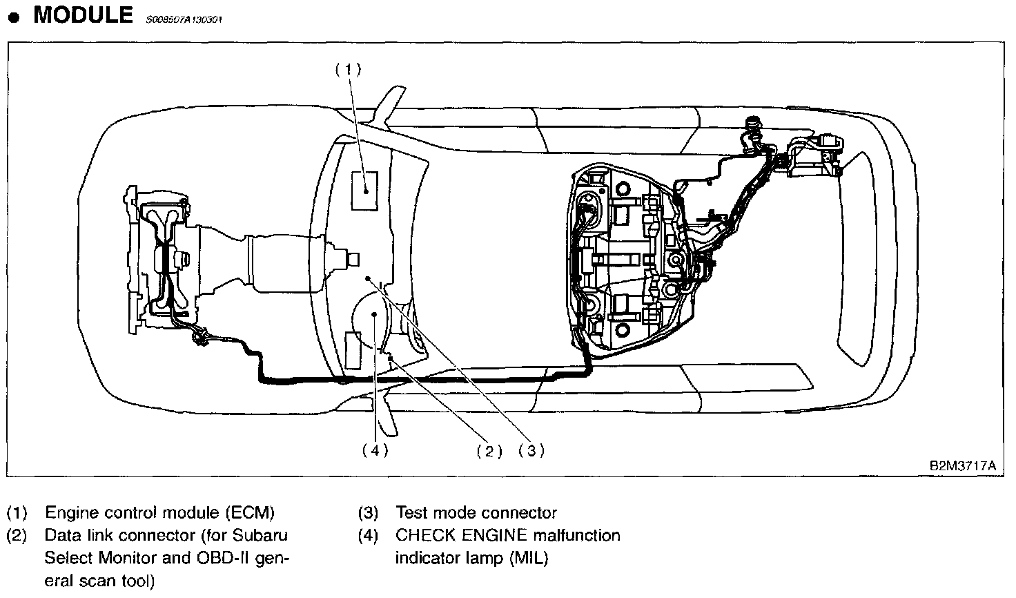 2. Data link connector (for Subaru Select Monitor and OBD-II general scan tool)