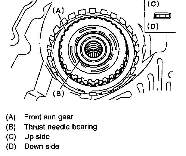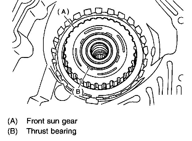 12) Install front sun gear and thrust needle bearing.