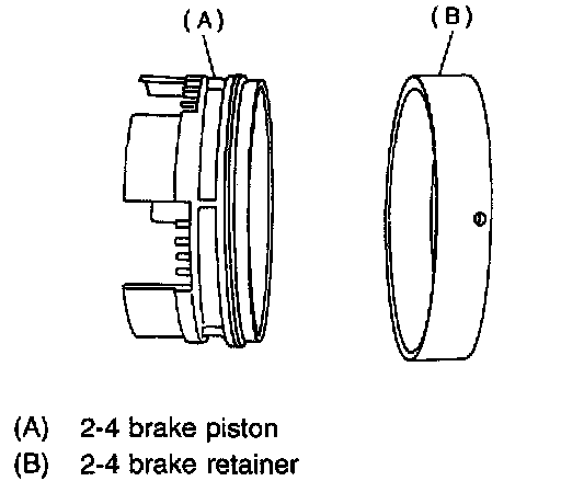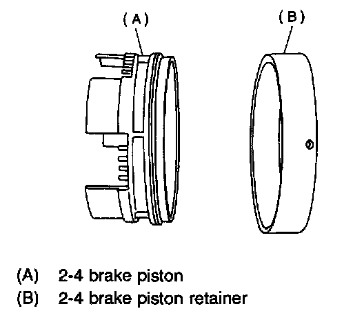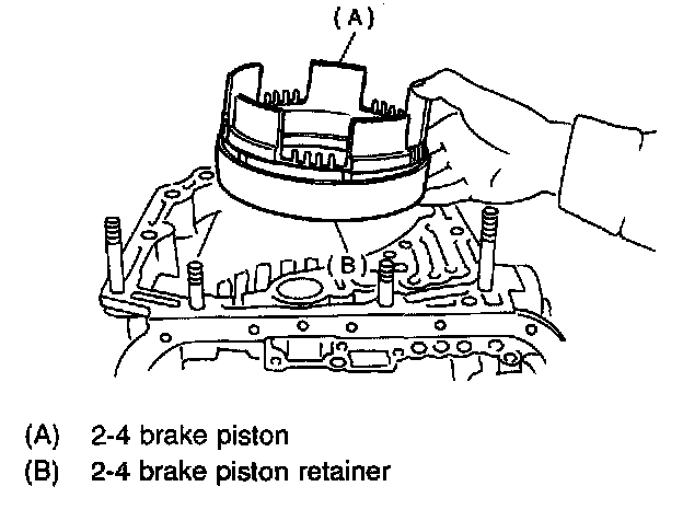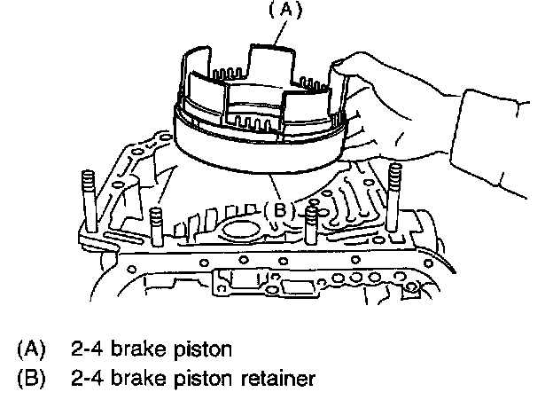 CAUTION: When removing the brake piston 2-4 and piston retainer, be careful not to rub or bump them against the transmission case.
