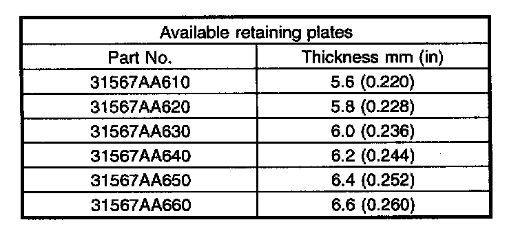 NOTE: Select a retaining plate with a suitable value from the following table, so that the clearance becomes the standard value.
