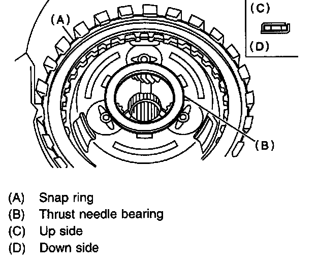 18) Remove snap ring and thrust needle bearing.
