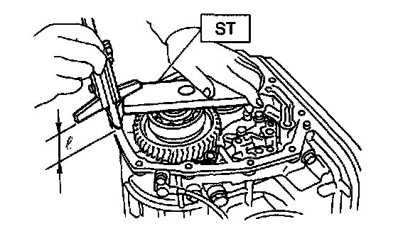 2) Measure the distance "l" from the transmission case mating surface to end of bearing with ST.