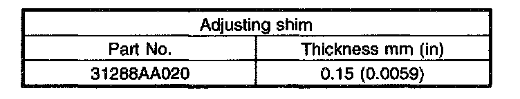 NOTE: Add 0.05 mm (0.0020 inch) and 0.20 mm (0.0079 inch) thick shims to area "T". Calculate formula 2 to determine "H". The calculated "H" refers to the shim thickness range. Select shims of suitable thicknesses within the calculated "H" range.