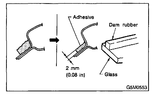 NOTE: For minimum drying time and time the vehicle must be left standing before driving after bonding, follow instructions or instruction manual from the adhesive manufacturer.