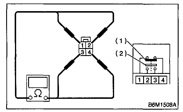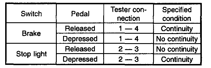Check continuity brake switch (1) and stop light switch (2) between terminals.