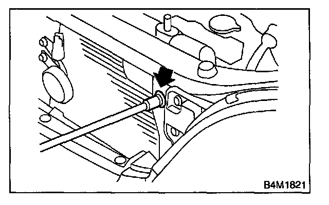 6. Remove 2 bolts. While lifting condenser, pull it out through the space between the radiator and the radiator panel.