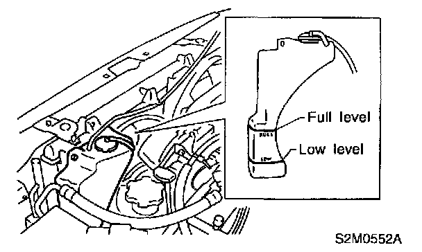 6. If engine coolant level drops from upper level of reservoir tank, add engine coolant to upper level.