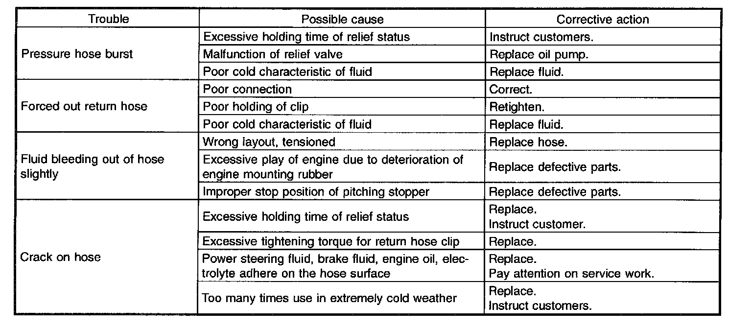 Since resistance for heat or low temperature brittleness are gradually declining according to time accumulation of hot or cold conditions for the hoses and their service lives are shortening accordingly, it is necessary to perform careful inspection frequently when the vehicle is used in hot weather areas, cold weather area and/or a driving condition in which many steering operations are required in short time.