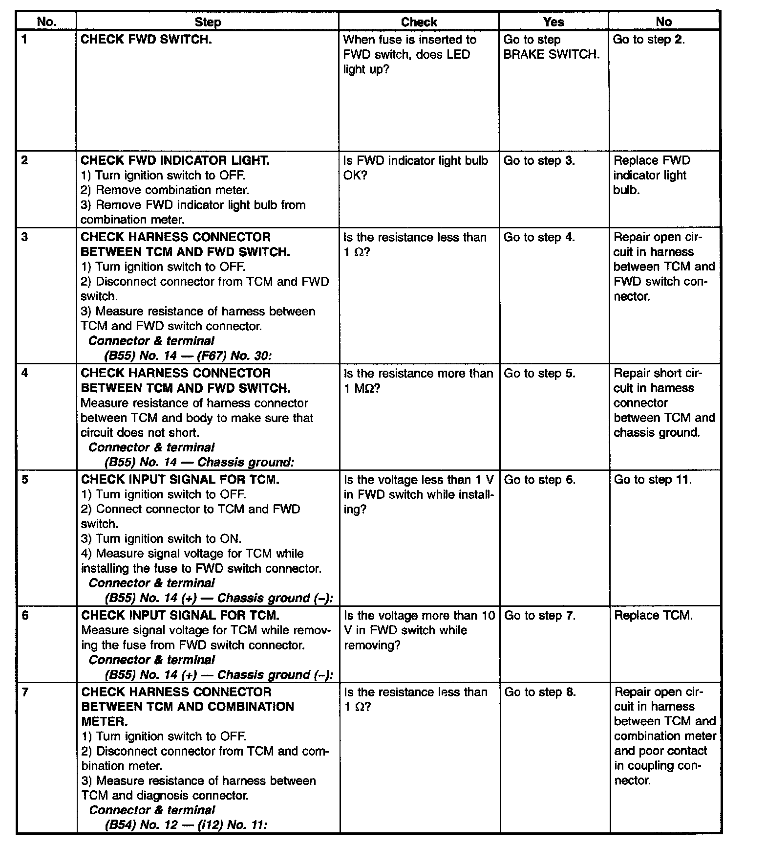 B: CHECK FWD SWITCH.