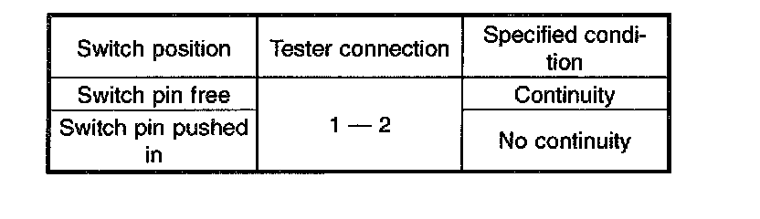 2. Check clutch switch continuity. If continuity is not as specified, replace the switch.