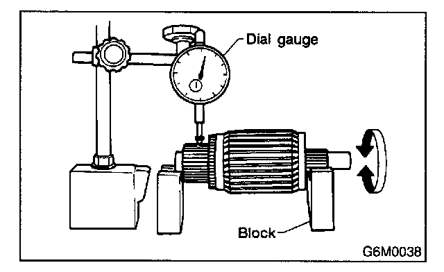 Using circuit tester, touch one probe to the commutator segment and the other to shaft. There should be no continuity. If there is a continuity, armature is grounded.