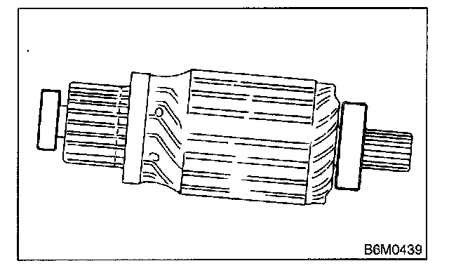 1. Check commutator for any sign of burns of rough surfaces or stepped wear. If wear is of a minor nature, correct it by using sand paper.