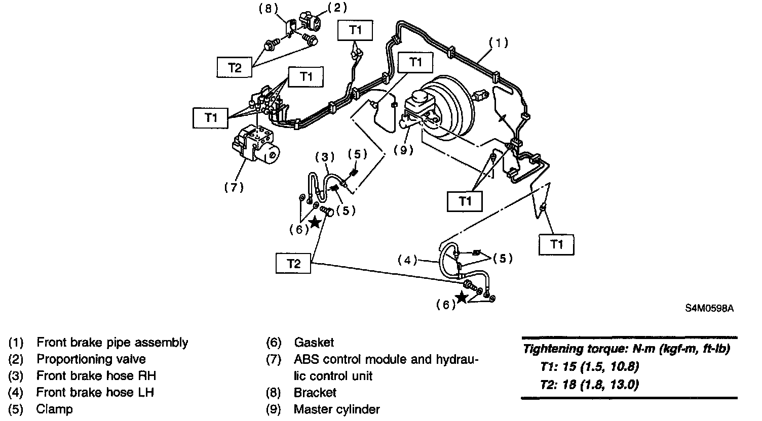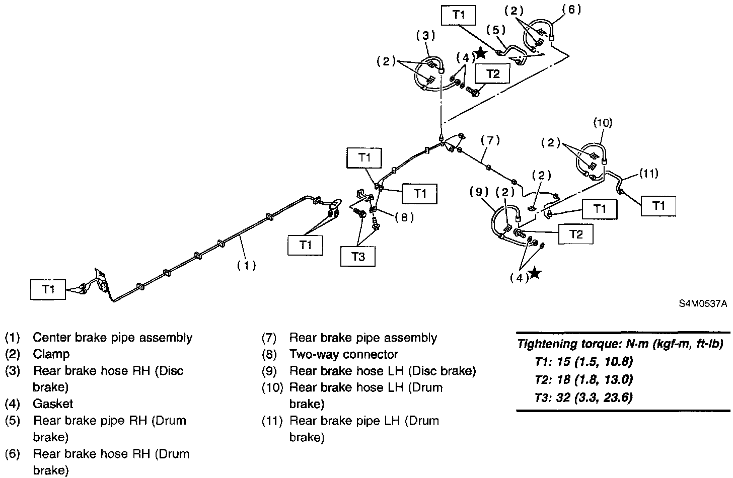 CENTER AND REAR BRAKE PIPES AND HOSE