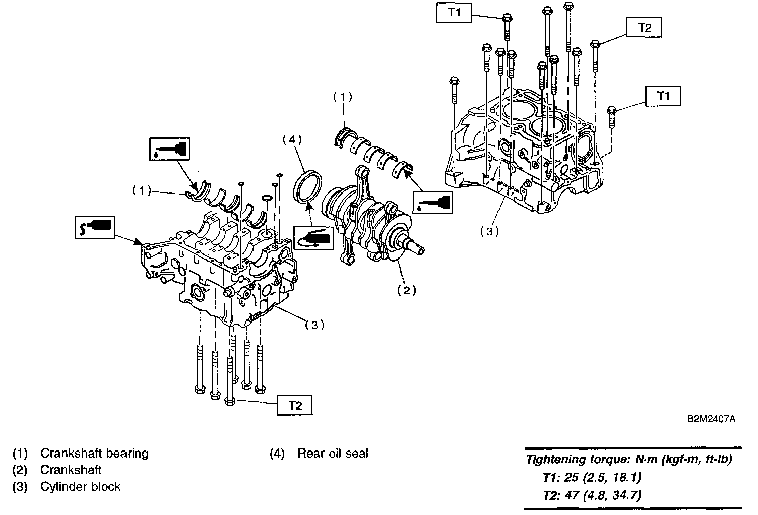 4) Tighten 10 mm cylinder block connecting bolts in alphabetical sequence.
