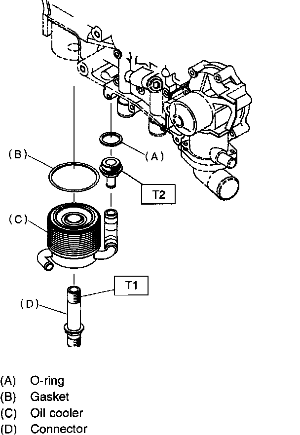 19) Remove water by-pass pipe between oil cooler and water pump (AT vehicles only).