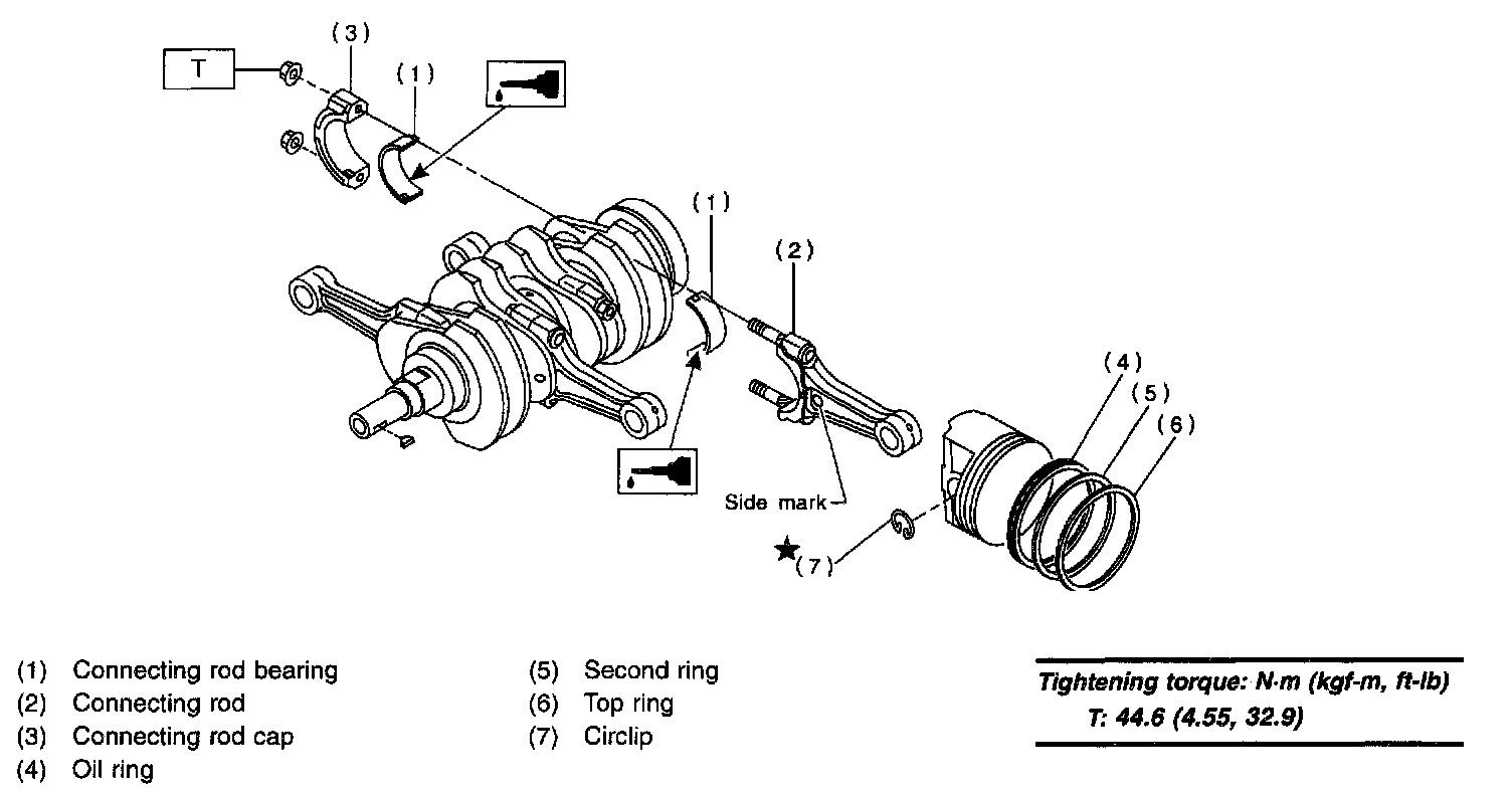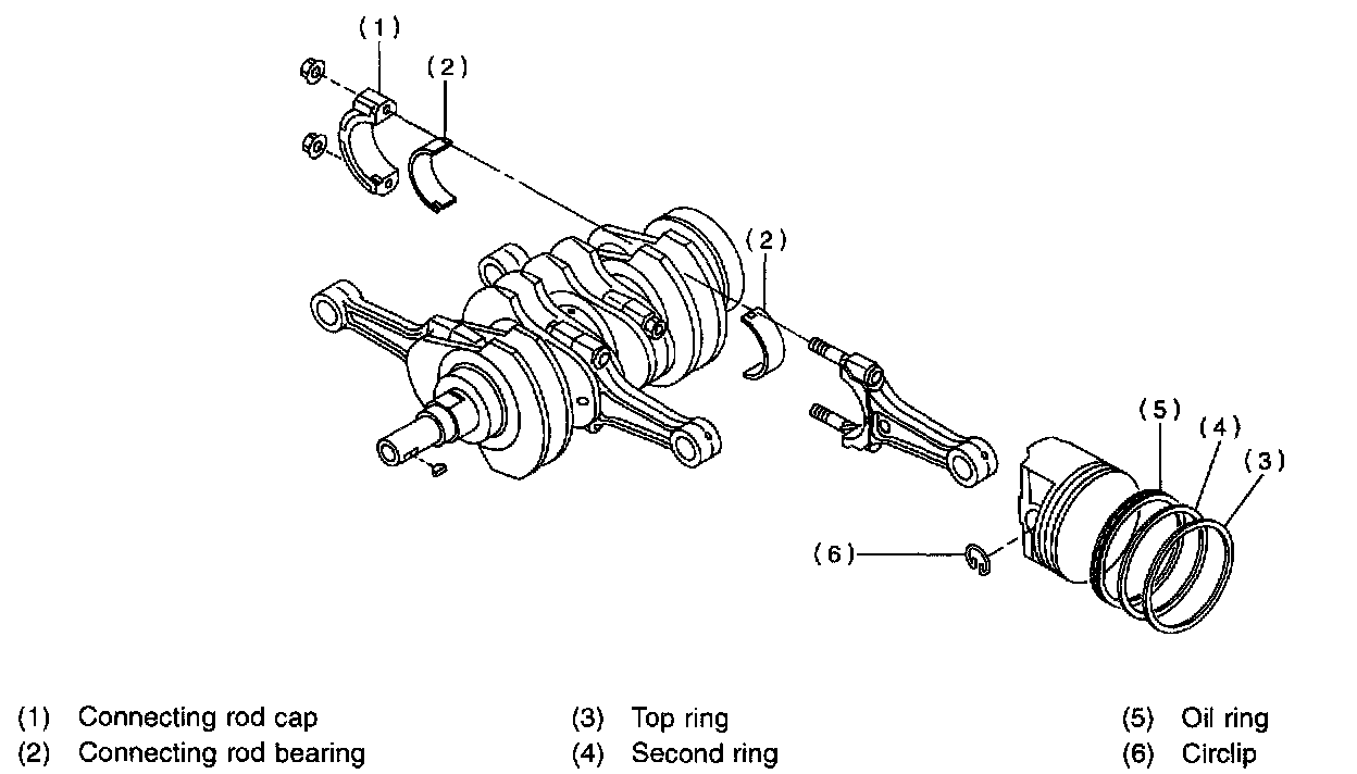 ^ The oil ring is a combined ring consisting of two rails and a spacer in between. When installing, be careful to assemble correctly.