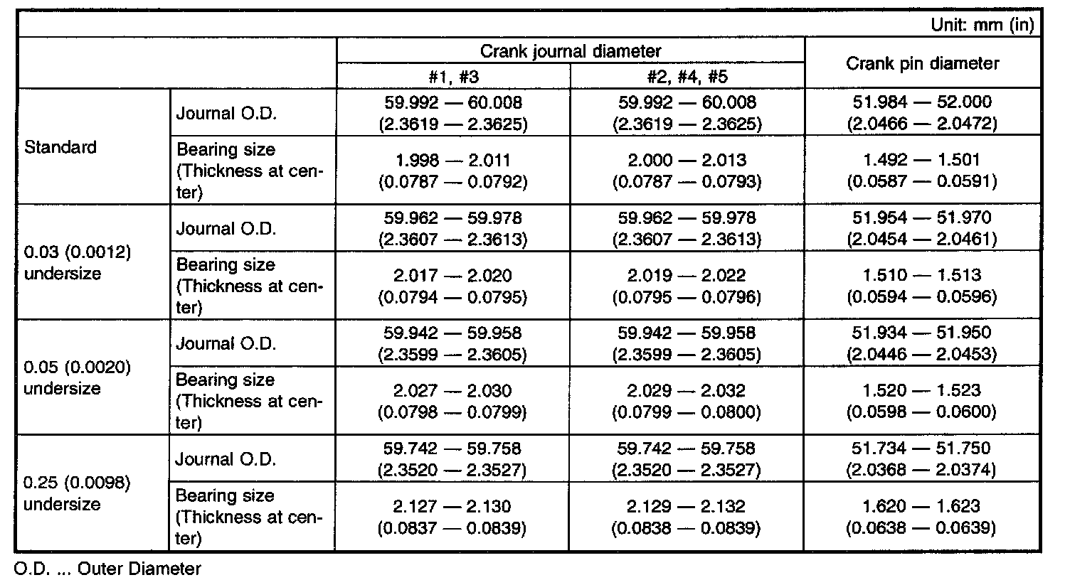 CAUTION: If a suitable V-block is not available, install #1 and #5 crankshaft bearing on cylinder block, position crankshaft on these bearings and measure crankshaft bend using a dial gauge.