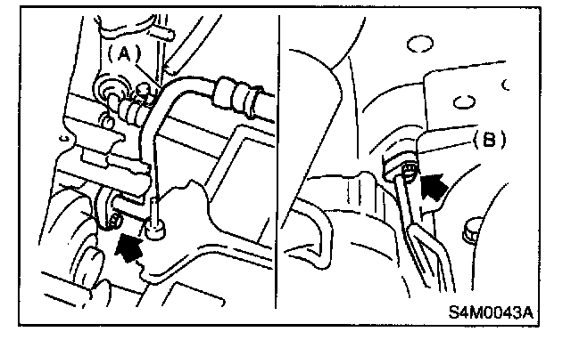 3. Disconnect high-pressure hose (A) and high-pressure pipe (B) from condenser.