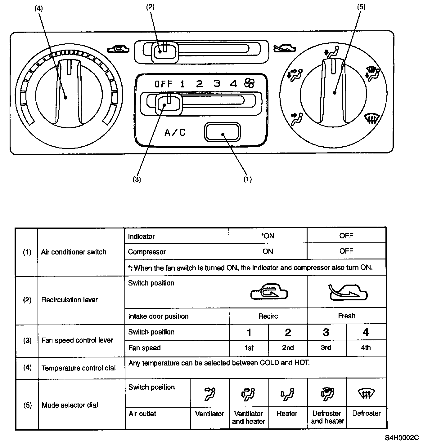 Mode Selector Switch and Air Flow: