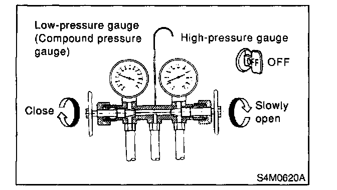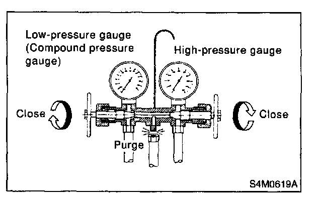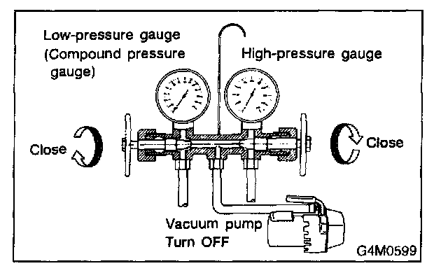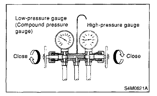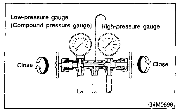 1. Close the valves on low-/high-pressure sides of the manifold gauge.