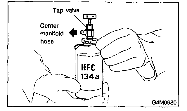 9. Following the can tap operation manual instructions, install it to the refrigerant can.