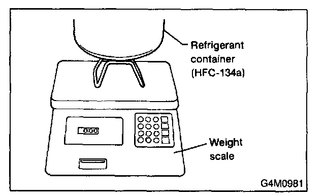 11. When a 13.6 kg (30 lb) refrigerant container is used, measure the refrigerant amount in use using a weight scale.