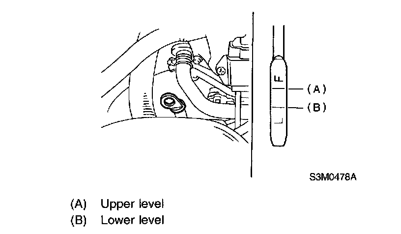 5. To prevent overfilling the differential gear oil, do not add oil above the "F" line.