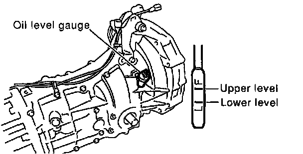 5. Pull out the oil level gauge again and check the oil level on it. If it is below the lower level, add oil through the oil level gauge hole to bring the level UD to the upper level.