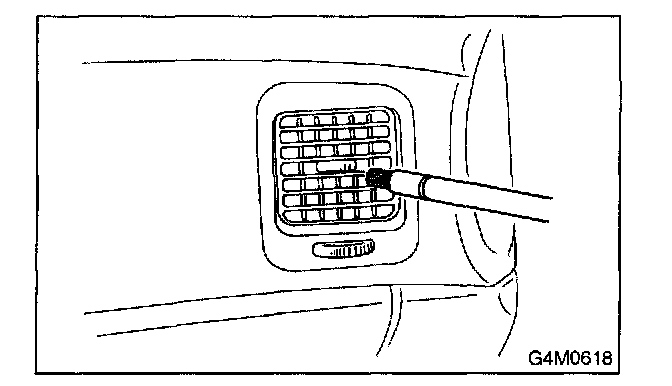 12. Turn the ignition key to ON position, and run the blower at high speed for 1 minute. Stop the blower to check the ventilation grille on the instrument panel. While moving the tester closer to the grille, run the blower for 1 or 2 seconds, then stop it. Check the grille at that point for at least 10 seconds.