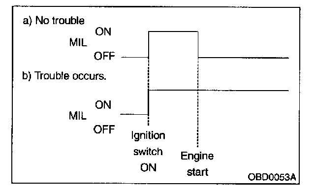 2. After starting the engine, the MIL goes out. If it does not, either the engine or the emission control system is malfunctioning.